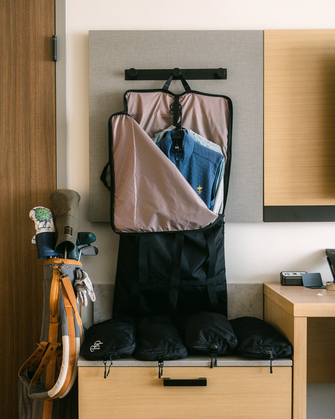 Make use of the Birdie Pack garment bag and hang polos, button-downs, and jackets.